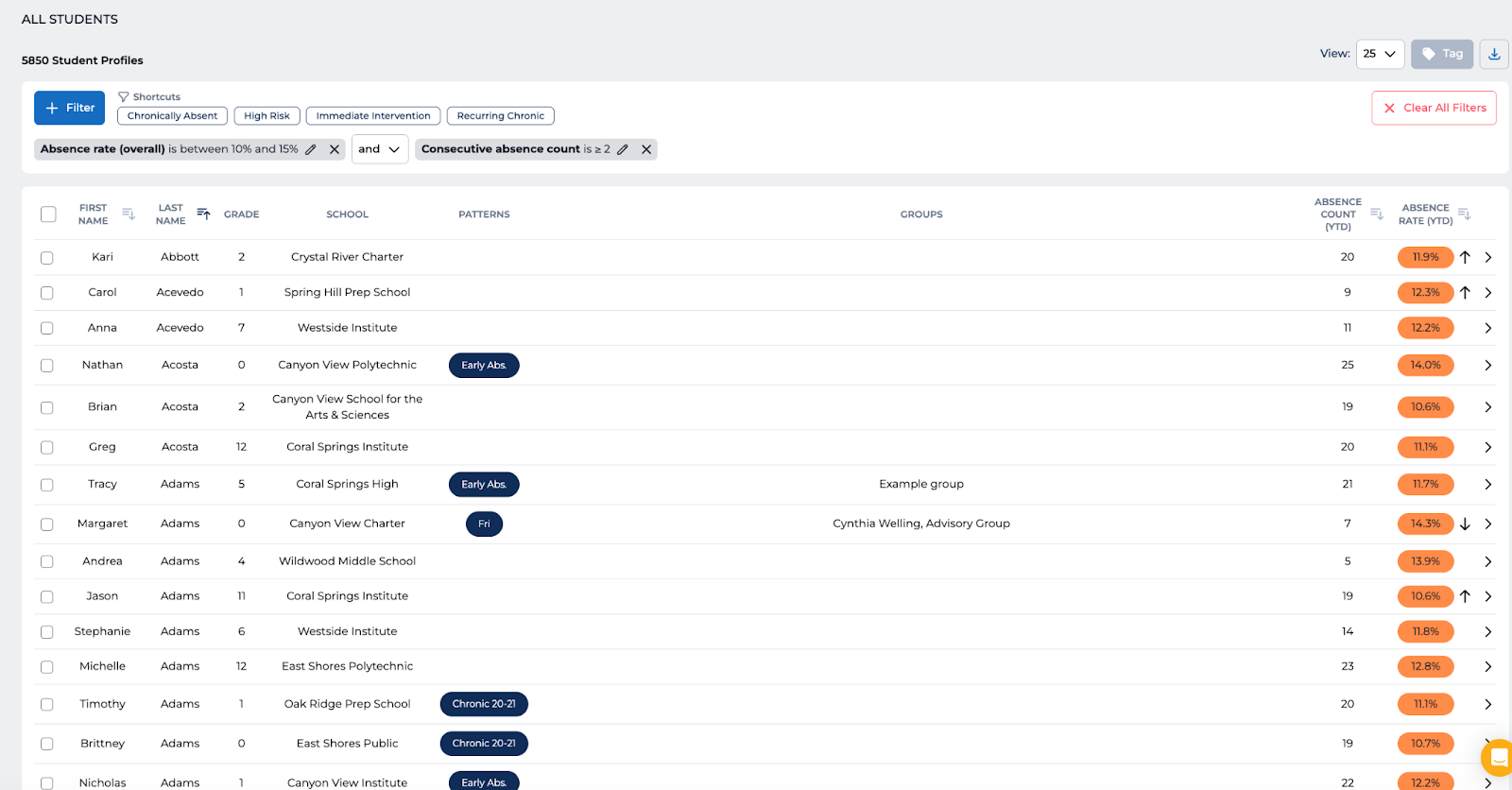 Take a look at your latest attendance data and notice the patterns and trends. Are students missing specific days of the week? Are they exhibiting trends like persistent, acute, or recent absenteeism? By tuning in to these patterns and trends, you can more efficiently and effectively intervene.